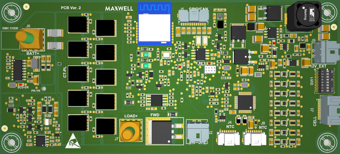 Maxwell’s proprietary algorithms achieve dynamic battery swapping (hot-plugging) using auto-addressing. Scalable architecture supports up to 18 batteries in parallel.
